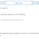 - 250mg (8:1 Dried Herb Equivalent [DHE] 2000mg) of saw palmetto fruit extract per vegetable capsule, standardized to contain a minimum of 45% fatty acid content