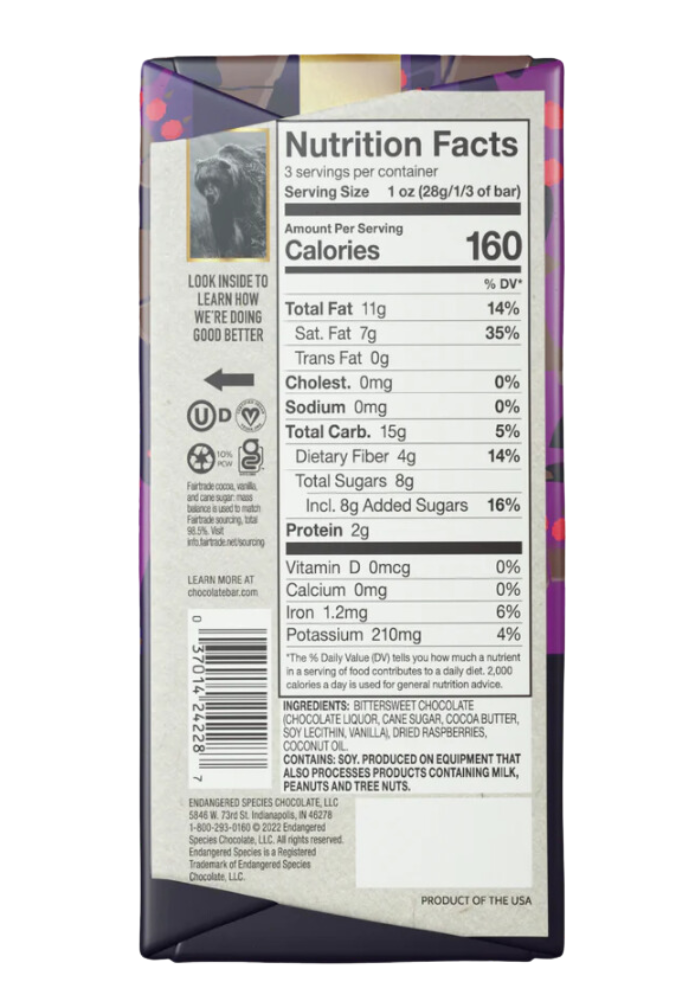 - Endangered Species Dark Chocolate with Raspberry 85g