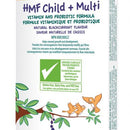 HMF Child + Multi is a great tasting combination of probiotics and vitamins that helps to promote optimal health in children. The intestinal microbiota, which contains more than 400 bacterial species, can be altered by antibiotic use, aging, and premature or caesarean births. The most commonly used probiotics are Lactobacilli and Bifidobacteria, which are safe for both adults and children. They effectively colonize the intestines; however, once their ingestion ends, their counts decrease or disappear. In addition to decreasing the survival of pathogenic bacteria by reducing the pH, probiotics reinforce the epithelial barrier. They control permeability by mediating tight junction integrity, and prevent pathogenic adherence to epithelial cells by increasing mucin release on intestinal surfaces. Vitamin C is a powerful antioxidant, and is required for the production of collagen, the primary structural protein in bones, cartilage, teeth, and wound healing. Vitamin A promotes the natural barrier function of the skin, helps to stimulate immune cell development, and maintains eyesight and night vision to further promote optimal health.