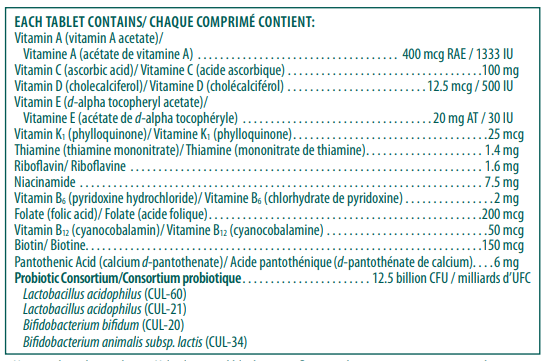 - Provides 12.5 billion CFU per daily dose from a combination of four proprietary human-sourced strains
