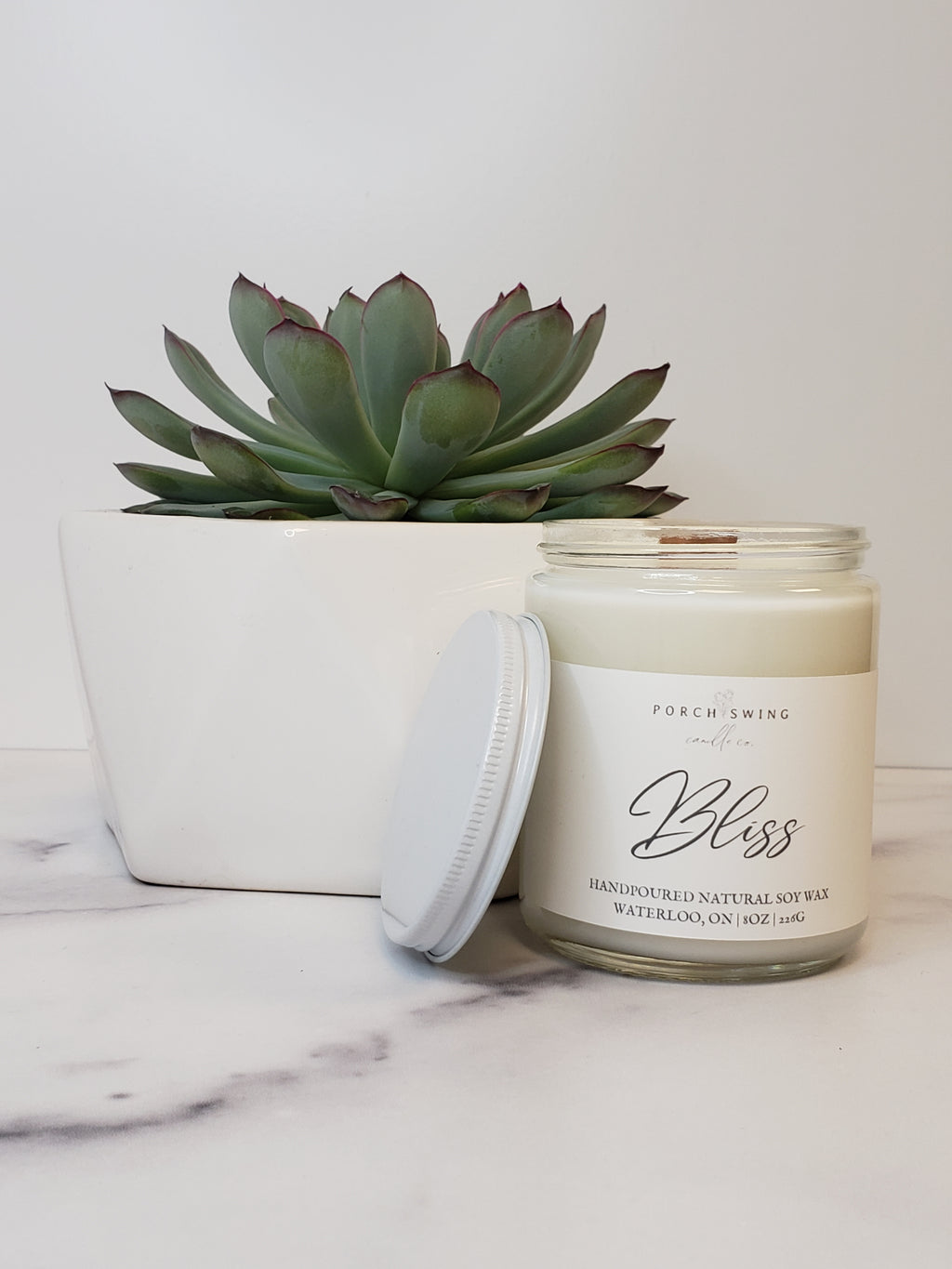 Porch Swing Soy Candle - locally made here in KW - Bliss scent (notes of warm Incense, Indonesian white copal, patchouli.)