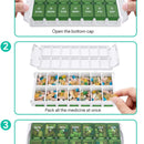 - Easy to Use and Fast Organizing Medicine - you can organize a week of medicine at one time by opening the bottom cap.