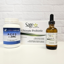This immune bundle contains 3 of our most recommended products for immune support. ACES plus Zinc, Vitamin D3 drops and Sage's Ultimate Probiotic. We have added a well balanced probiotic to the Starter Immune Bundle to support the gut systems influence on our immune system. A perfect fundamental combination!