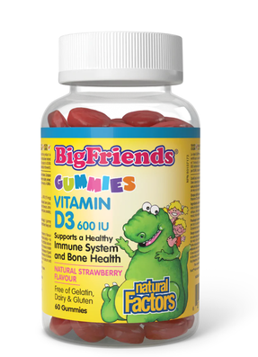 Worried your little ones aren’t getting enough sunshine vitamin? Natural Factors Big Friends Vitamin D3 Gummies deliver 600 IU of kid-friendly immune and bone support in a delicious strawberry gummy!