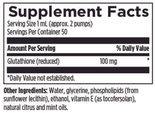 Liposomal Glutathione provides 100 mg of reduced glutathione in each 1 mL serving (approximately 2 pumps). This product is formulated using liposomal technology, which results in superior delivery, absorption and bioavailability. Liposomal delivery bypasses proteolytic degradation in the GI tract and is uniquely effective for reaching and interacting with target tissues. Thus, this technology helps to overcome the absorption challenges typically faced with oral glutathione supplementation.