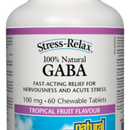 Fast-acting relief for nervousness and acute stress, Natural Factors Stress-Relax 100% Natural GABA is a superior source and naturally produced form of the important brain compound gamma-aminobutyric acid (GABA). Convenient chewable tablets in tropical fruit flavour help to quickly promote relaxation and ease nervous tension.
