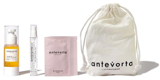 Discover Antevorta’s range of intimate care products with introductory formulations for your vulva, comprising a Hydrating Intimate Cleansing Gel, Intimate Pocket Spray, and Intimate Wipes. Formulated with traditional Chinese m...